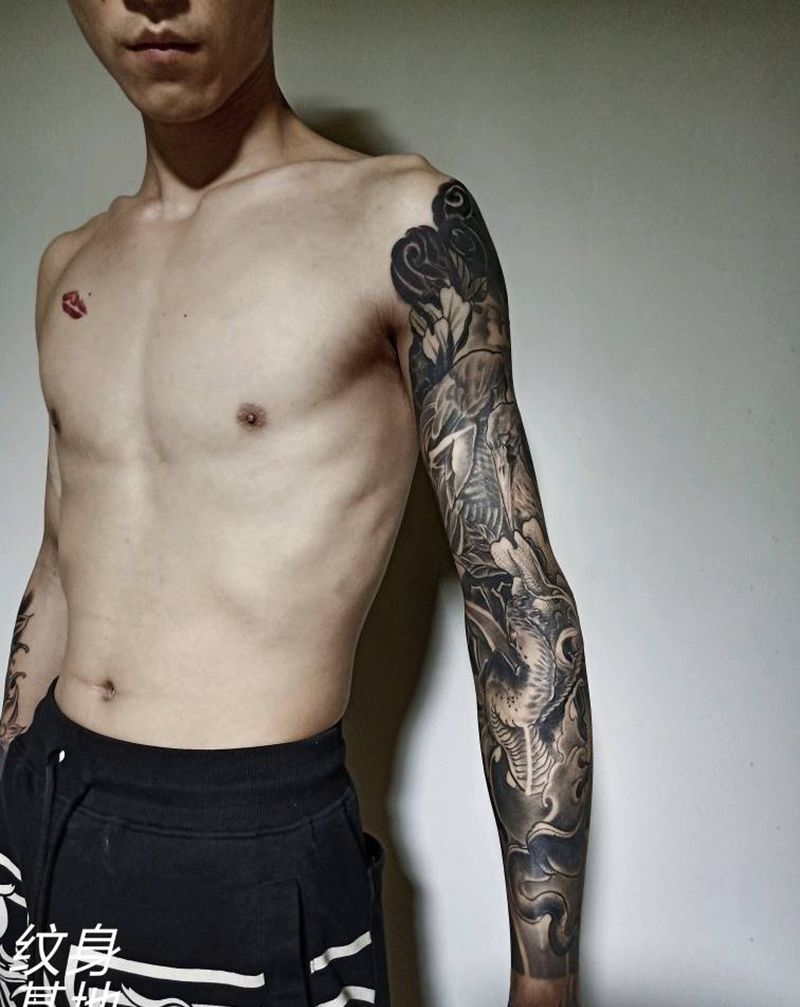 当前位置: 首页 >山东省烟台市纹身店-烟台纹身基地纹身图案>仙鹤花臂纹身图片_新传统纹身图案