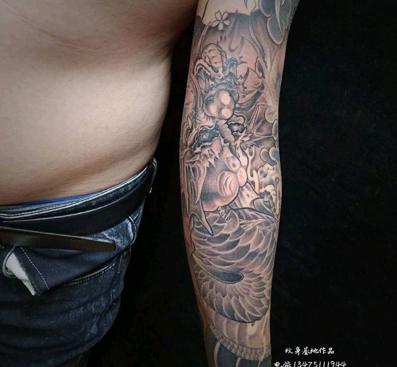 当前位置: 首页 >山东省烟台市纹身店-烟台纹身基地纹身图案>花臂龙纹身图片_手臂新传统纹身图案
