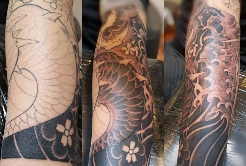 当前位置: 首页 >山东省烟台市纹身店-烟台纹身基地纹身图案>花臂龙纹身图片_手臂新传统纹身图案