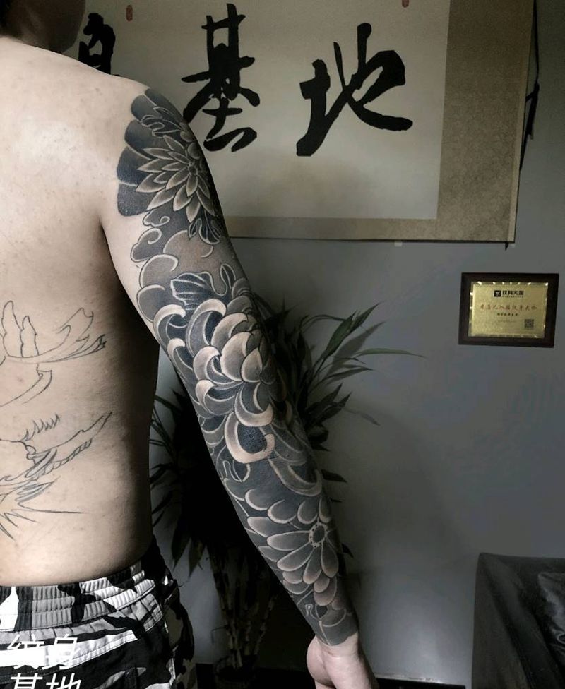 黑灰满背纹身图案