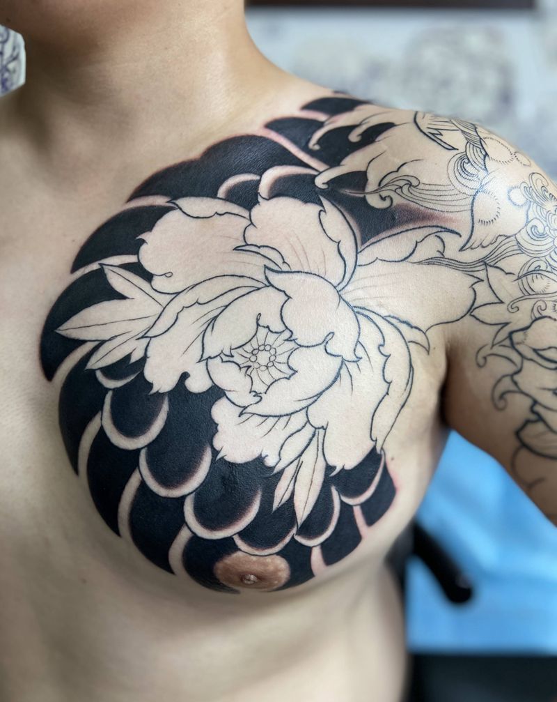 • 女性大花胸纹身_43张霸气漂亮的女性大花胸纹身图案作品