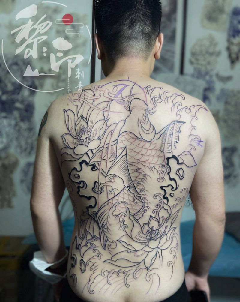 当前位置: 首页 >山东省烟台市纹身店-黎印刺青纹身图案>满背荷鲤!纹身图片_背部老传统纹身图案