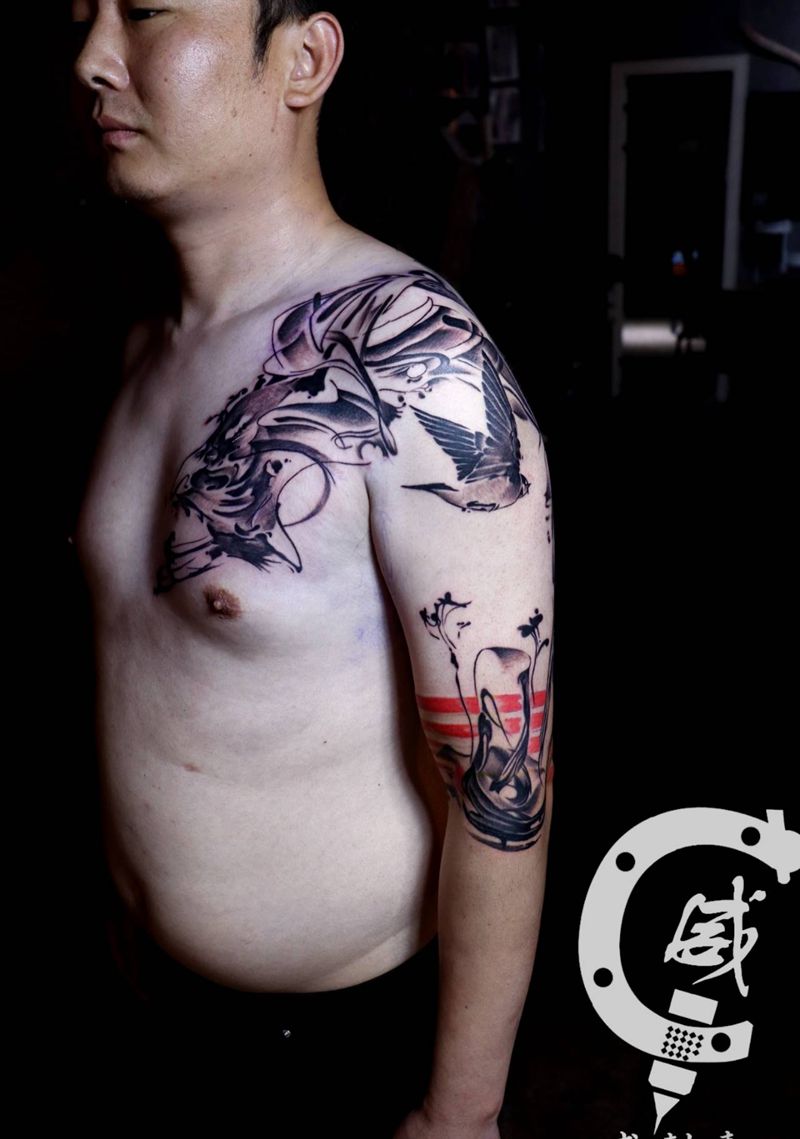 当前位置: 首页 >山东省枣庄市纹身店-威刺青纹身图案>水墨风纹身图片_胸部肩部水墨纹身图案