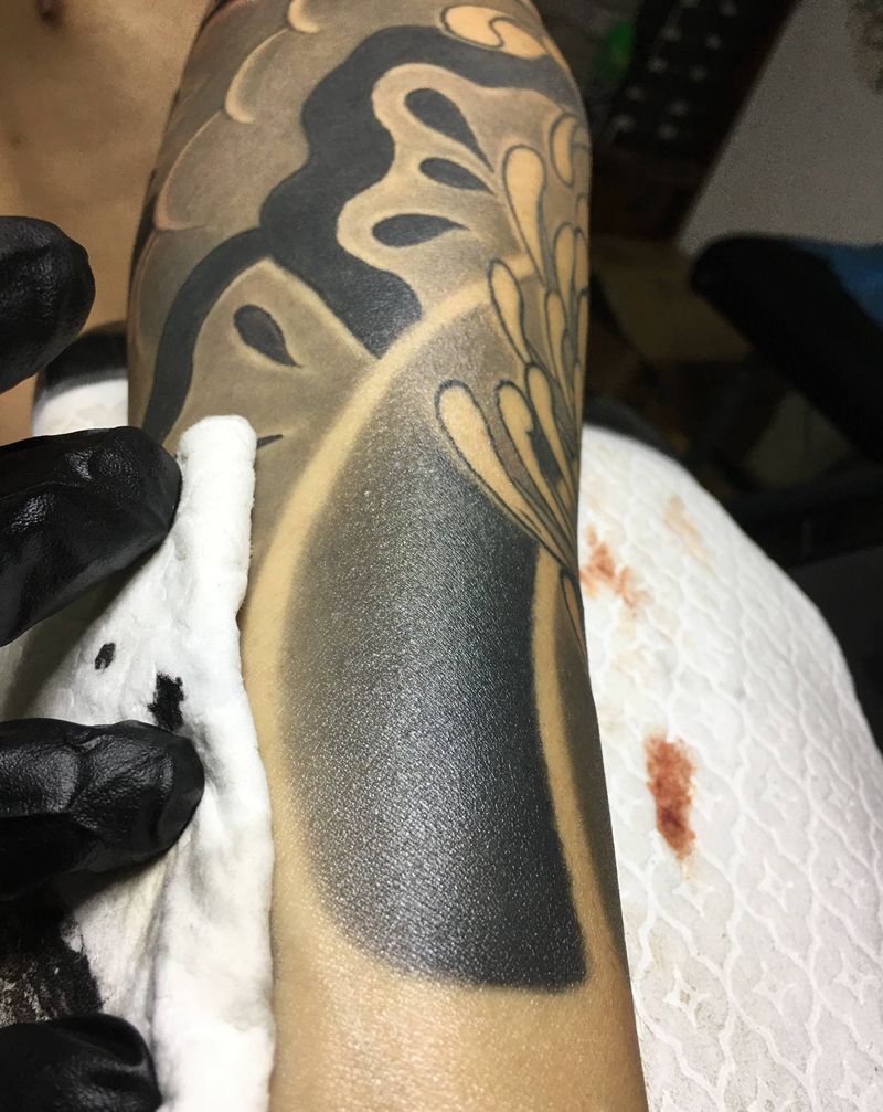 当前位置: 首页 >山东省烟台市纹身店-黎印刺青纹身图案>花臂:般若,菊花!纹身图片_手臂老传统纹身图案