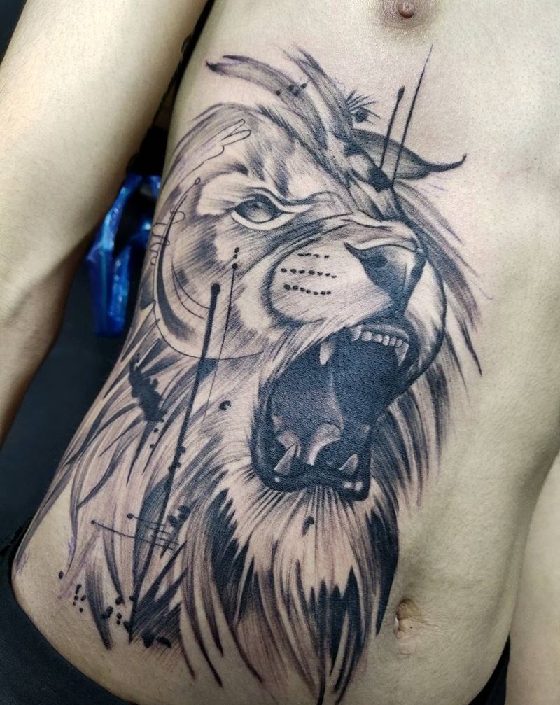 当前位置: 首页 >山东省枣庄市纹身店-威刺青纹身图案>狮子纹身图片_腰部腹部New School狮子纹身图案