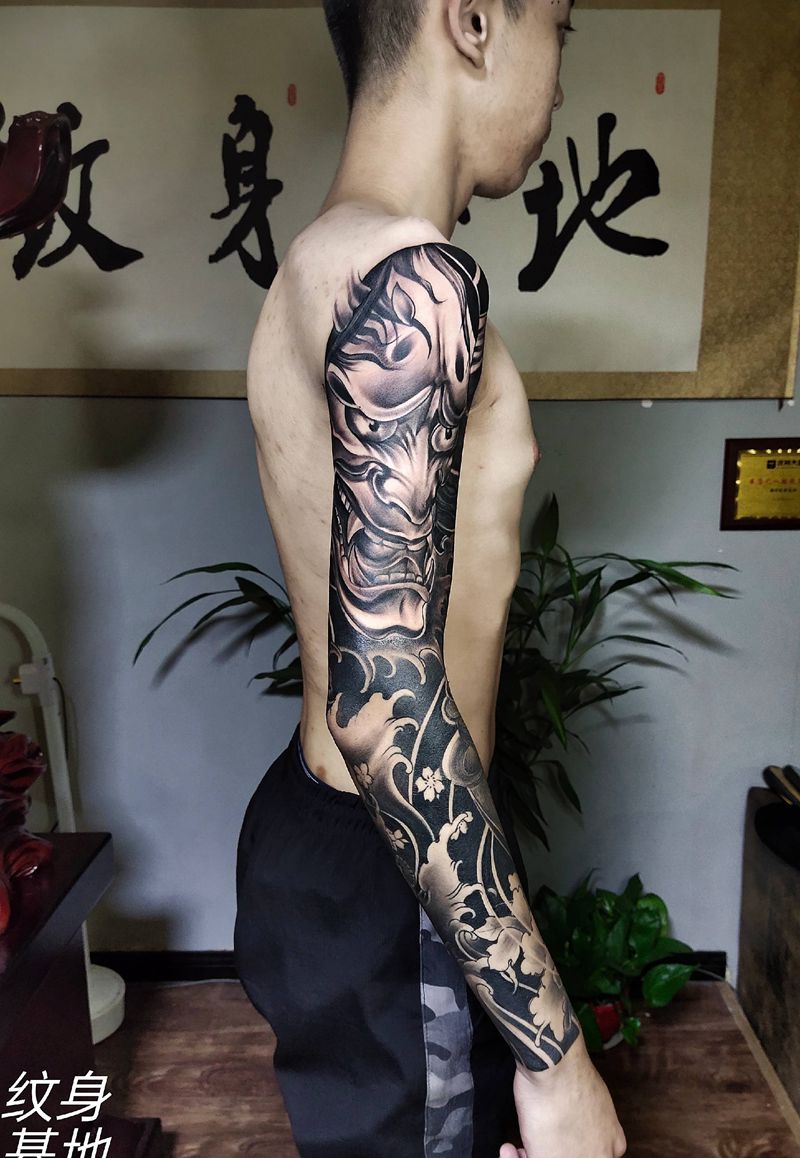 当前位置: 首页 >山东省烟台市纹身店-烟台纹身基地纹身图案>黑灰花臂纹身图片_老传统纹身图案