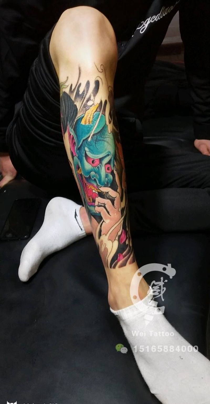 • T包小腿吹火男+阿多福纹身图片_腿部老传统新传统吹火男阿
