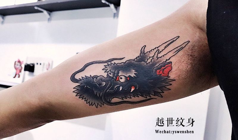 当前位置: 首页 >山东省烟台市纹身店-越世纹身纹身图案>龙头遮盖纹身图片_手臂老传统纹身图案