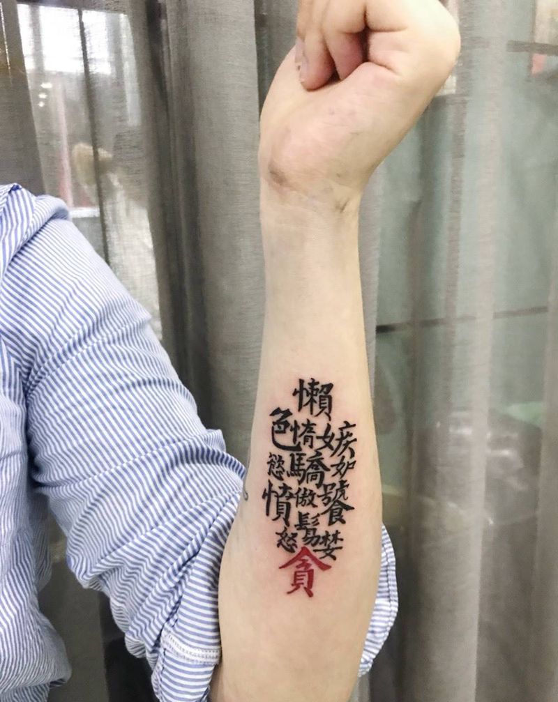 海洋作品纹身图片_成品手臂传统字符纹身图案