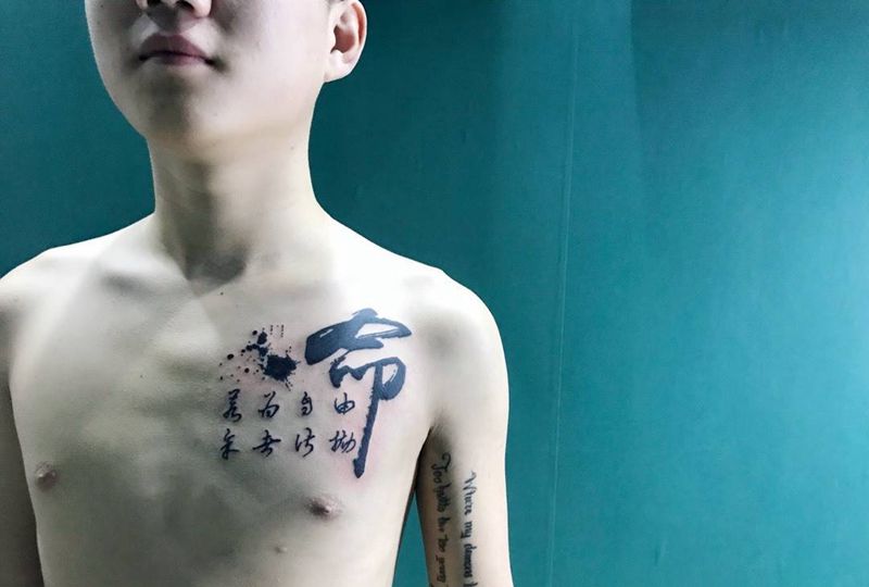 毛笔字合集纹身图片_胸部水墨成品传统原创纹身图案
