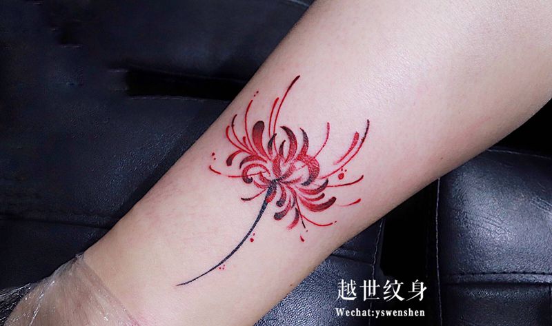 当前位置: 首页 >山东省烟台市纹身店-越世纹身纹身图案>彼岸花纹身图片_腿部水彩纹身图案