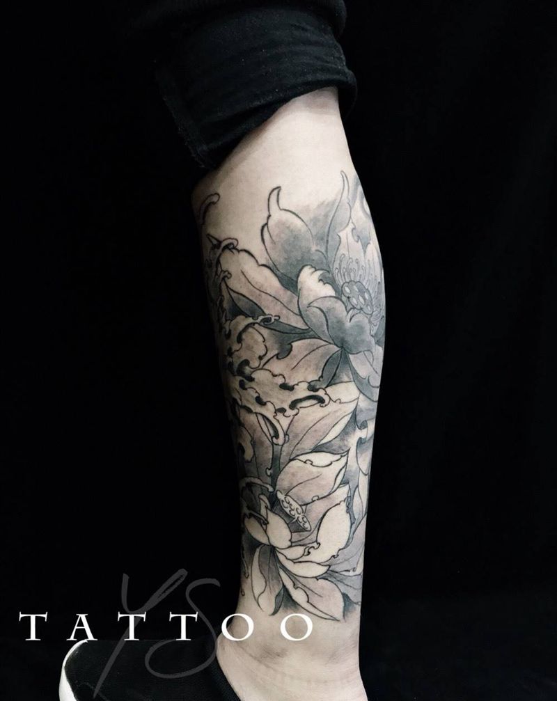 一组15张莲花纹身手