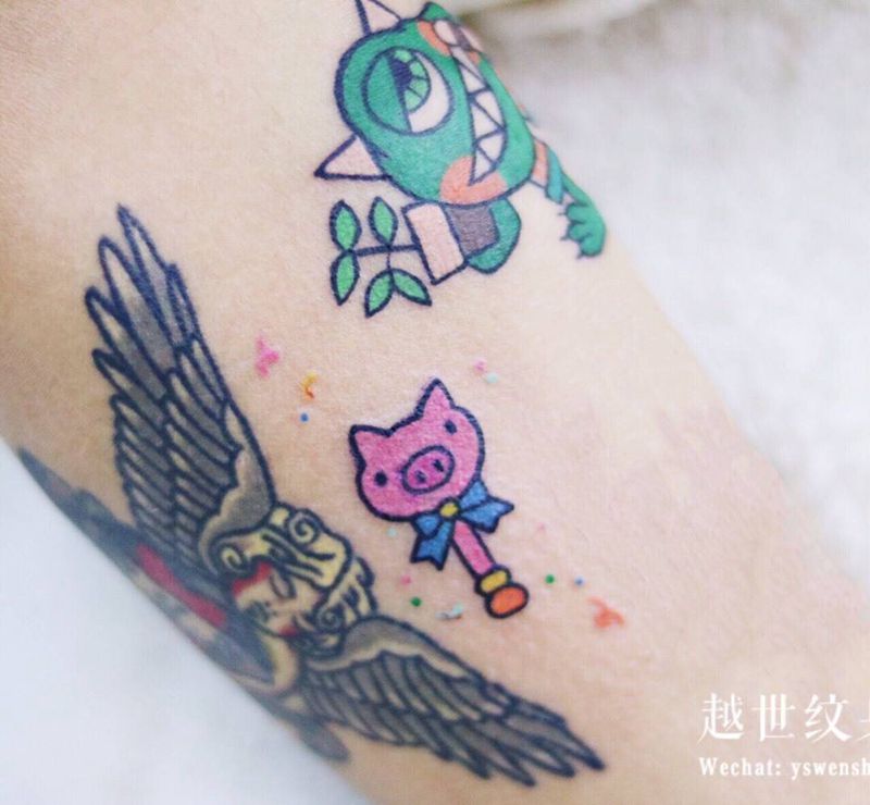 当前位置: 首页 >山东省烟台市纹身店-越世纹身纹身图案>绿眼怪+仙女棒纹身图片_手部手臂水彩New School纹身图案
