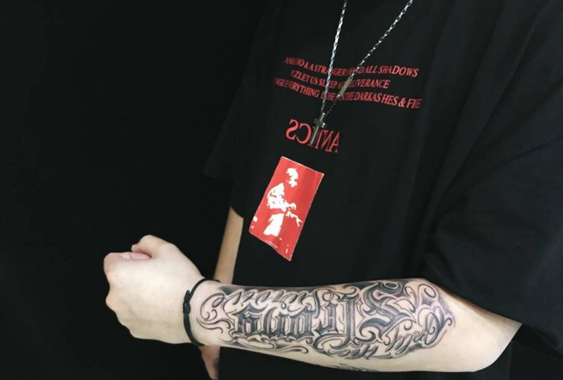 当前位置: 首页 >山东省烟台市纹身店-越世纹身纹身图案>花体字纹身图片_手臂花体字纹身图案