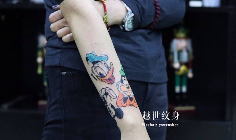 当前位置: 首页 >山东省烟台市纹身店-越世纹身纹身图案>迪士尼拼接纹身图片_手部手臂New School纹身图案