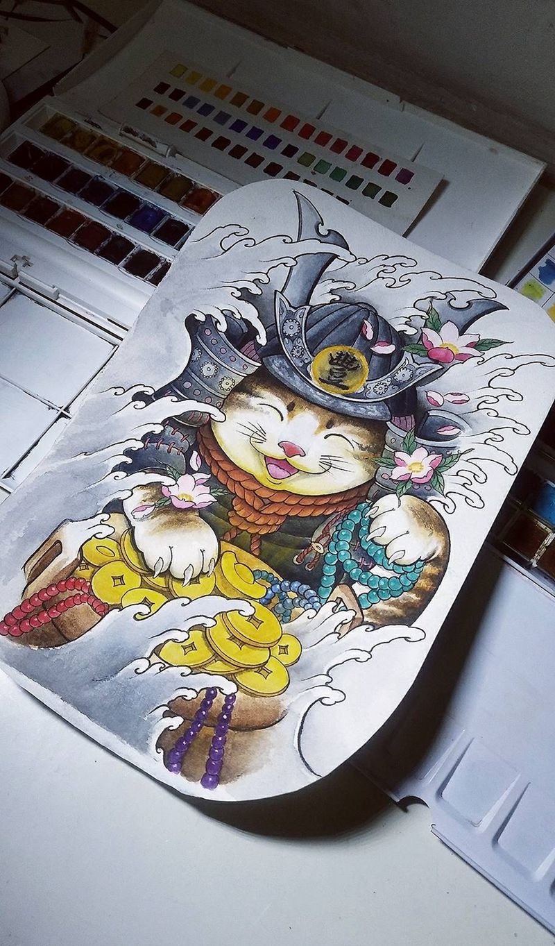 当前位置: 首页 >山东省东营市纹身店-丰刺青纹身图案>招财猫纹身图片_手稿纹身图案