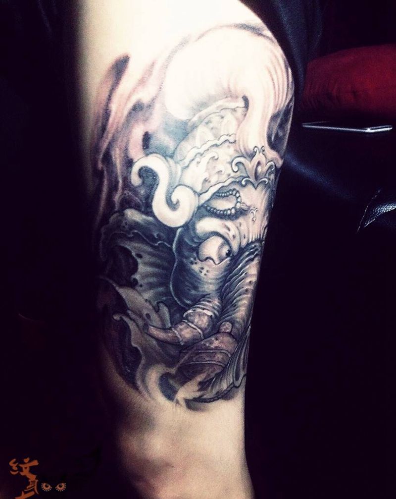 当前位置: 首页 >山东省东营市纹身店-丰刺青纹身图案>象神纹身图片_成品腿部传统宗教纹身图案