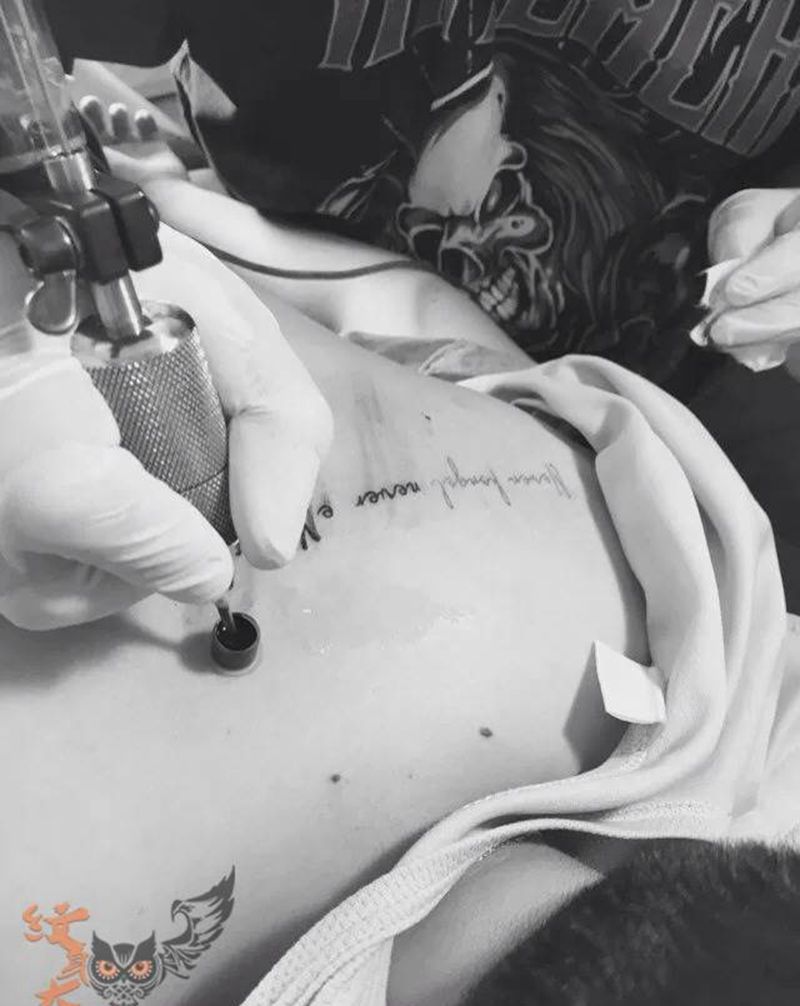 • T关于私处得爱!纹身图片_成品腹部清新字符图腾纹身图案