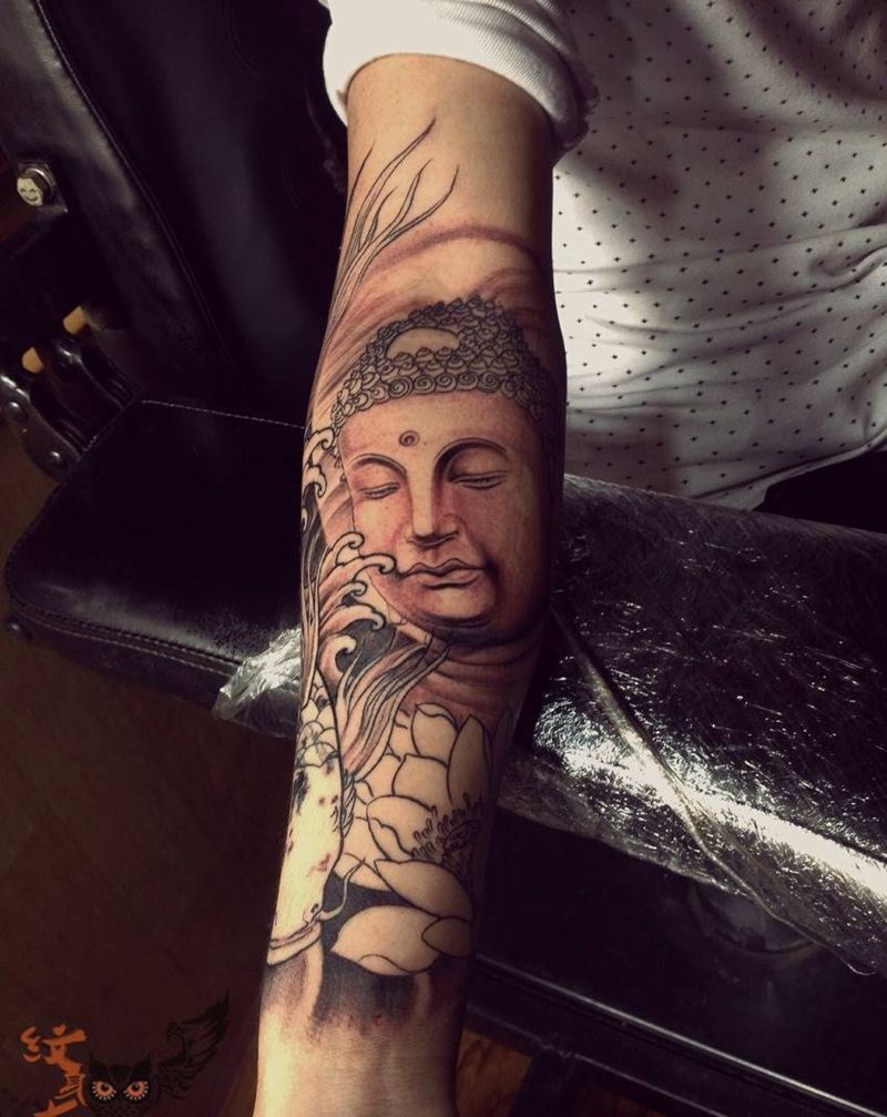 鲤鱼佛头纹身图片_成品手臂传统宗教动物植物纹身图案