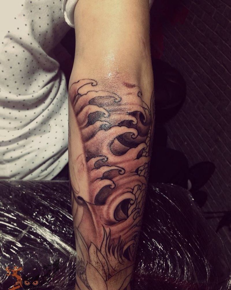 当前位置: 首页 >山东省东营市纹身店-丰刺青纹身图案>鲤鱼佛头纹身图片_成品手臂传统宗教动物植物纹身图案