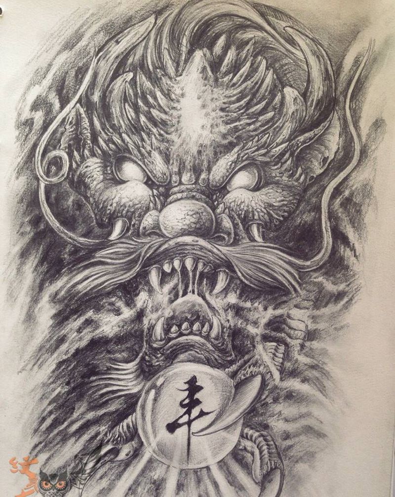 龙头龙头纹身图片_手稿手臂传统动物鬼神纹身图案