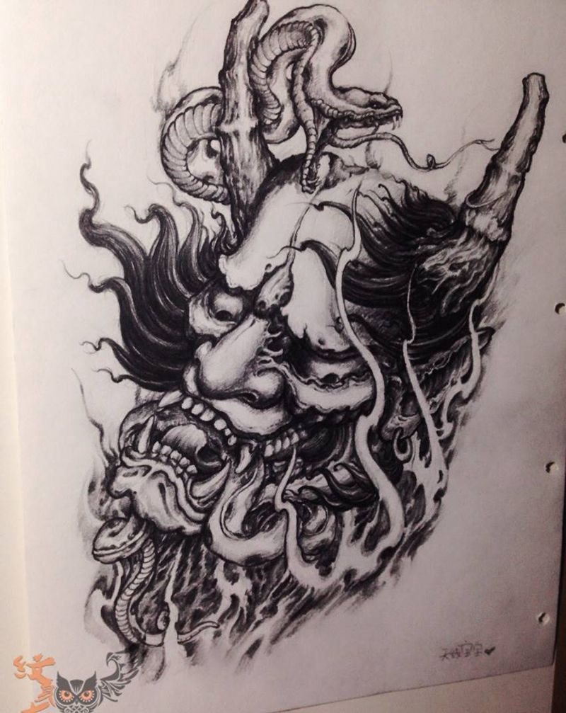 当前位置: 首页 >山东省东营市纹身店-丰刺青纹身图案>般若和蛇纹身图片_手稿背部传统人物鬼神纹身图案