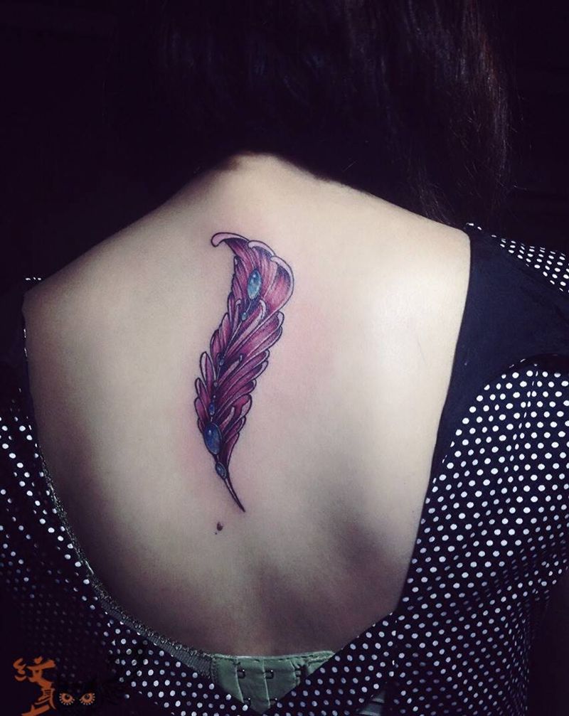 羽毛纹身图片_成品背部欧美动物静物纹身图案