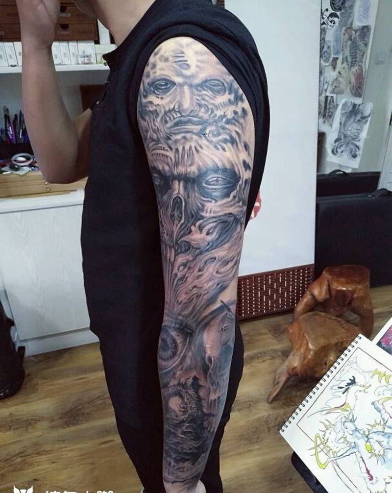 当前位置: 首页 >山东省东营市纹身店-丰刺青纹身图案>花臂纹身图片_手臂欧美人物宗教成品纹身图案