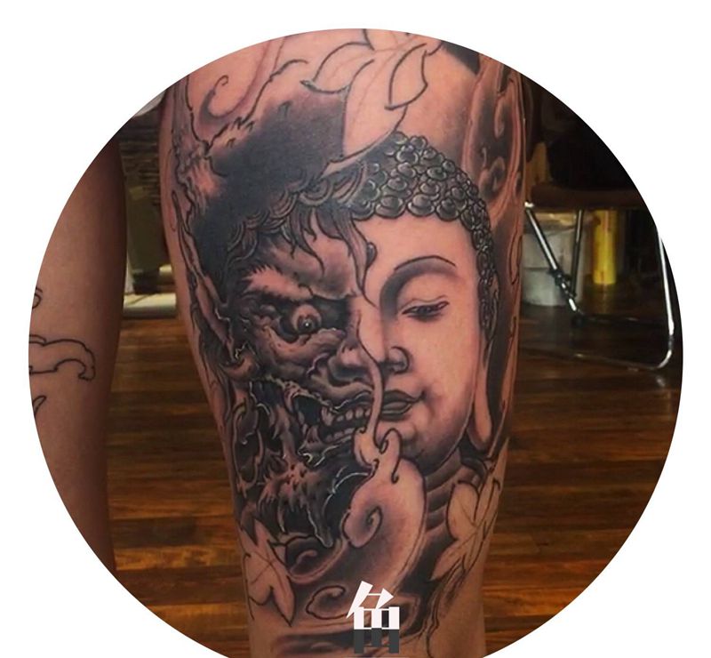 当前位置: 首页 >山东省烟台市纹身店-魚山刺青纹身图案>佛与魔纹身图片_腿部纹身图案