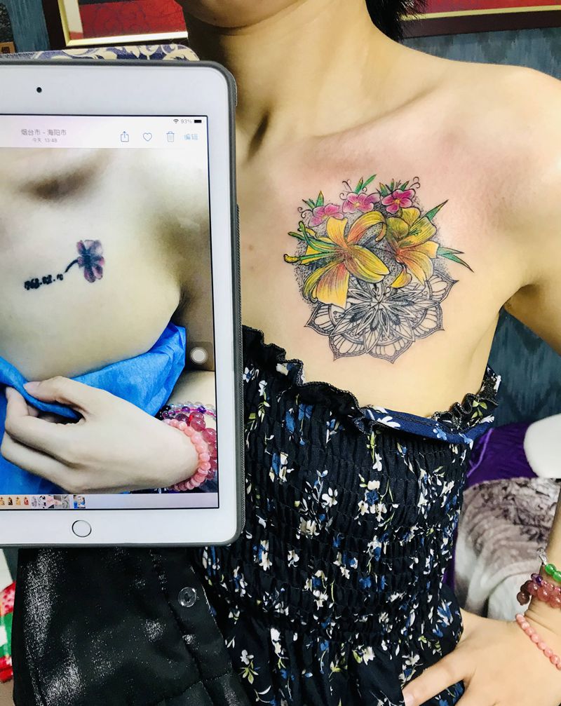 • 女性大花胸纹身_43张霸气漂亮的女性大花胸纹身图案作品