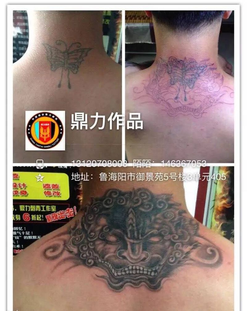 当前位置: 首页 >山东省烟台市纹身店-鼎力刺青专业纹身会所纹身图案>后颈遮盖纹身图片_成品颈部传统鬼神纹身图案