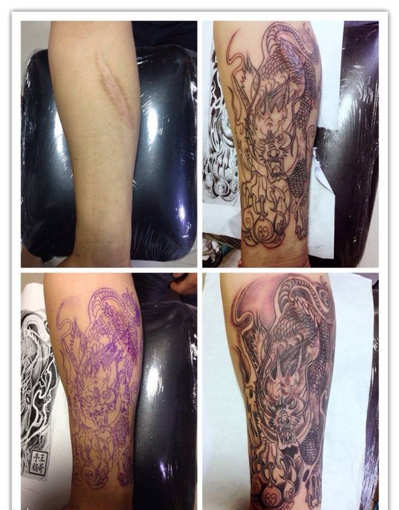 • T网红王老大花腿龙纹身图片_腿部新传统纹身图案