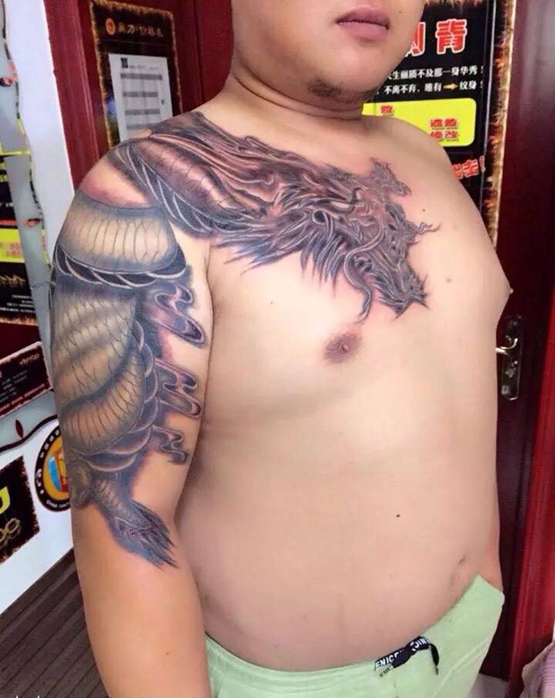 过肩龙纹身图片_胸部手臂传统动物纹身图案