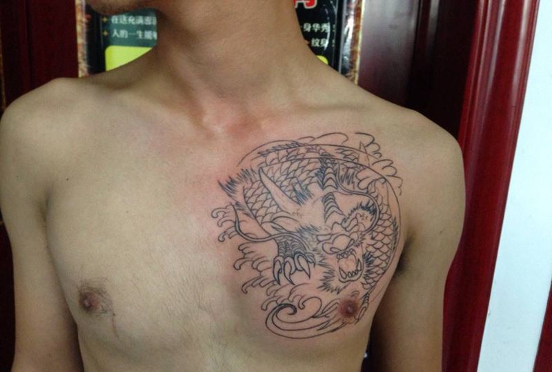 当前位置: 首页 >山东省烟台市纹身店-鼎力刺青专业纹身会所纹身图案>小胸花线条纹身图片_胸部传统动物纹身图案