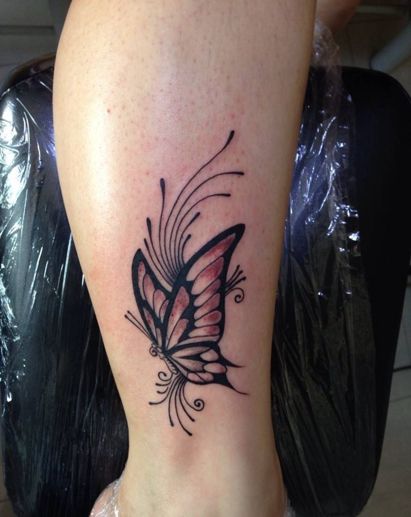 脚踝彩蝶纹身图片_成品腿部写实动物纹身图案