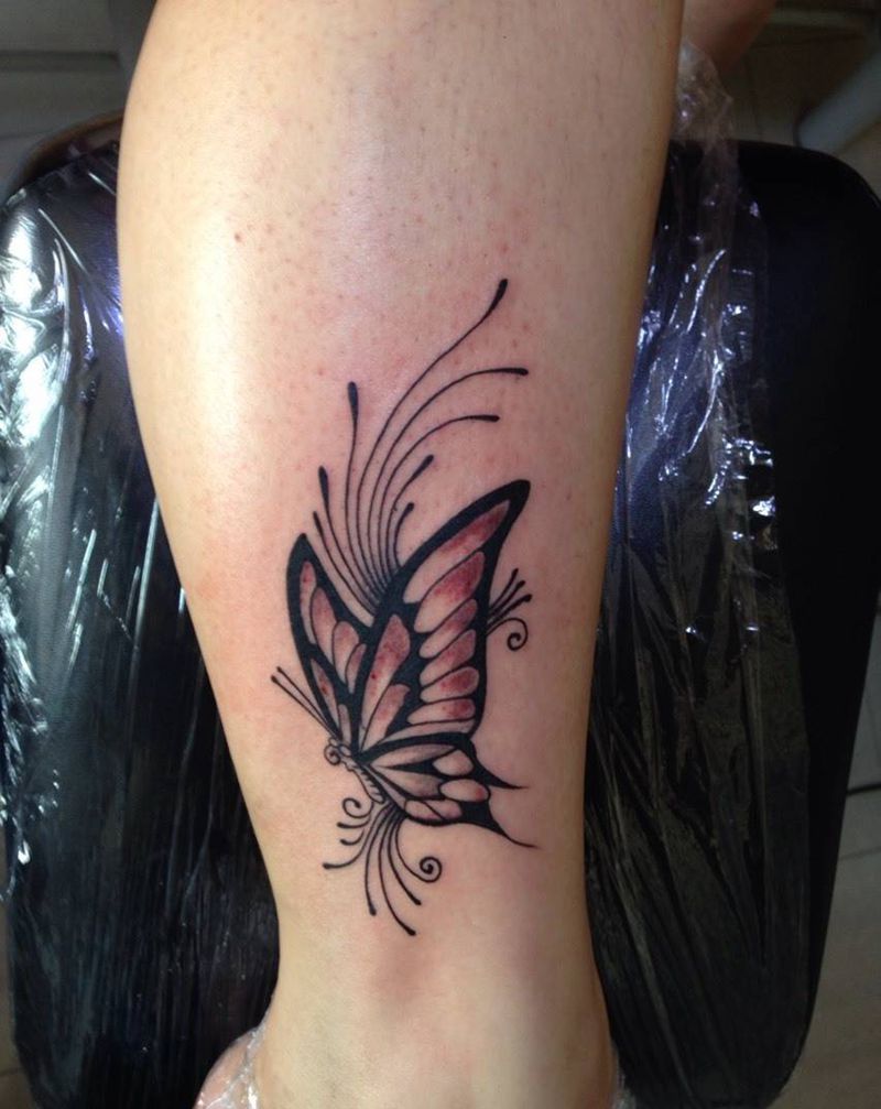 脚踝彩蝶纹身图片_成品腿部写实动物纹身图案