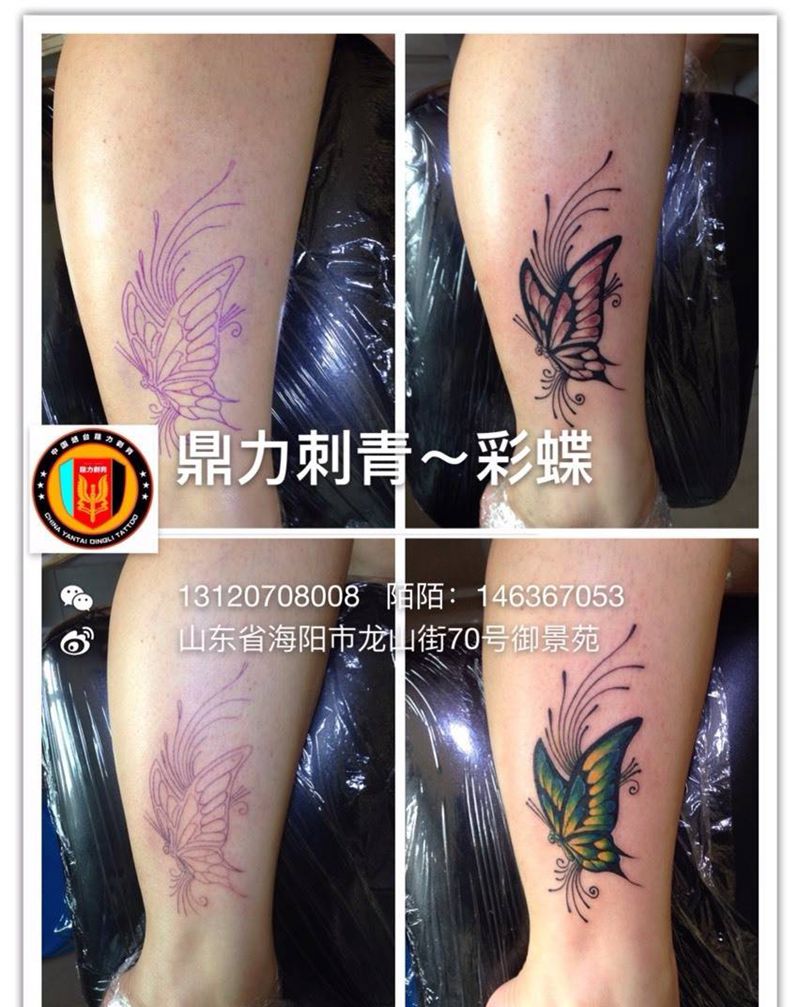 当前位置: 首页 >山东省烟台市纹身店-鼎力刺青专业纹身会所纹身图案>脚踝彩蝶纹身图片_成品腿部写实动物纹身图案