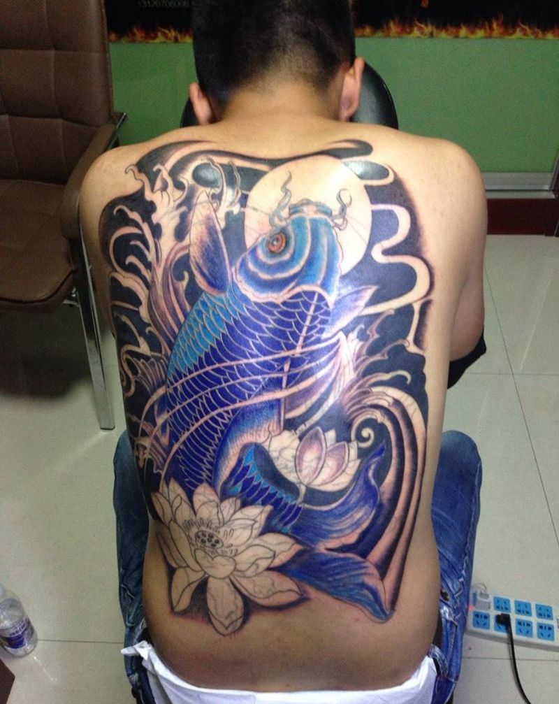 当前位置: 首页 >山东省烟台市纹身店-鼎力刺青专业纹身会所纹身图案>满背鱼遮盖纹身图片_背部传统动物纹身图案