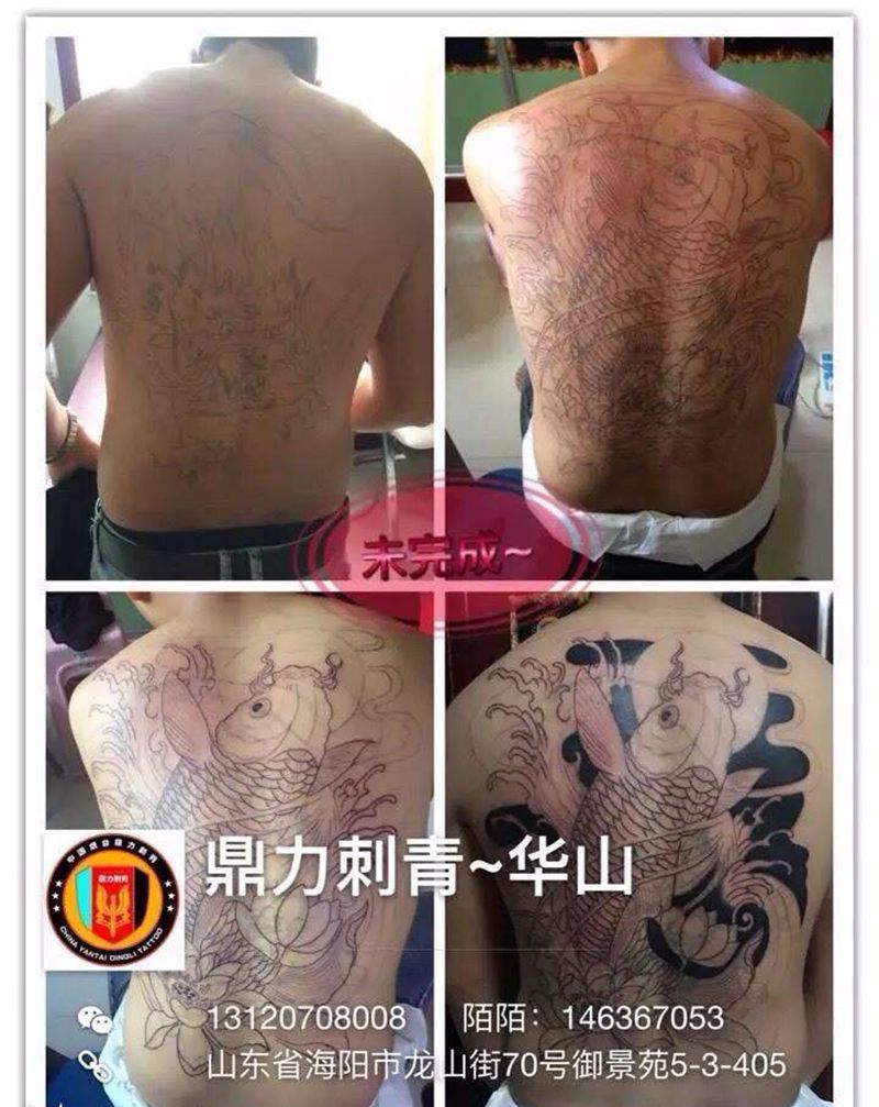 当前位置: 首页 >山东省烟台市纹身店-鼎力刺青专业纹身会所纹身图案>满背锦鲤遮盖纹身图片_背部传统动物纹身图案