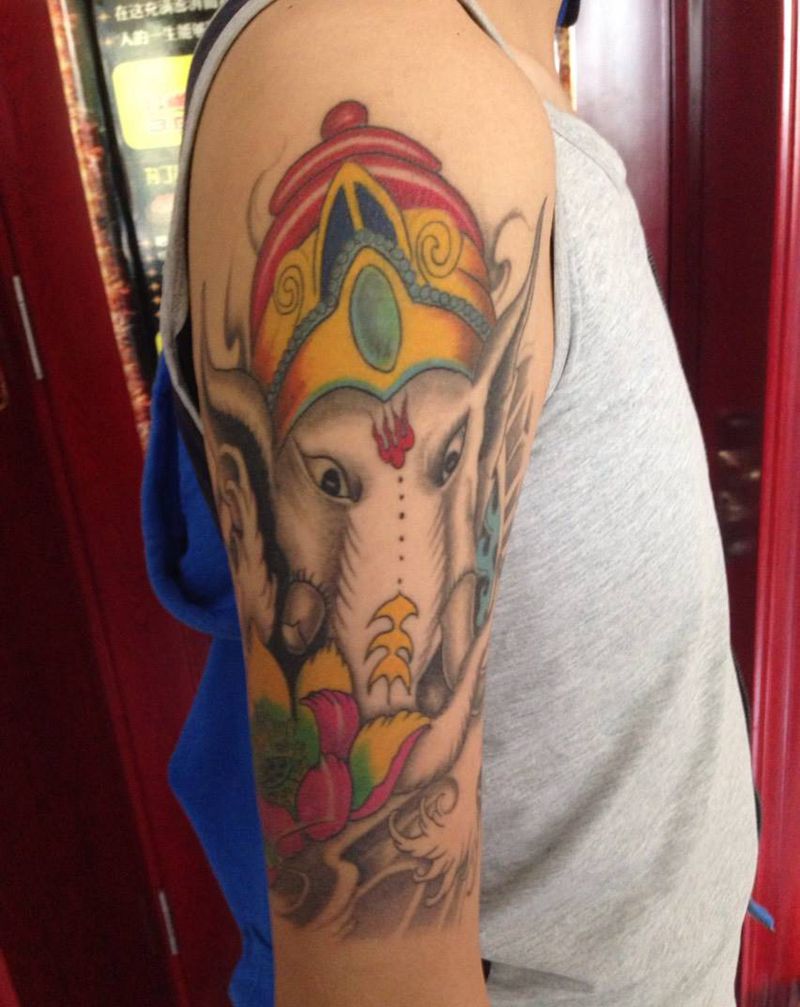 当前位置: 首页 >山东省烟台市纹身店-鼎力刺青专业纹身会所纹身图案>大臂象神纹身图片