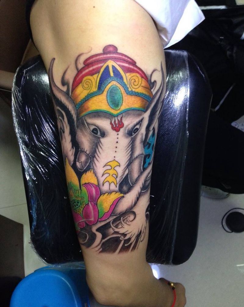 当前位置: 首页 >山东省烟台市纹身店-鼎力刺青专业纹身会所纹身图案>大臂象神纹身图片_手臂传统动物纹身图案
