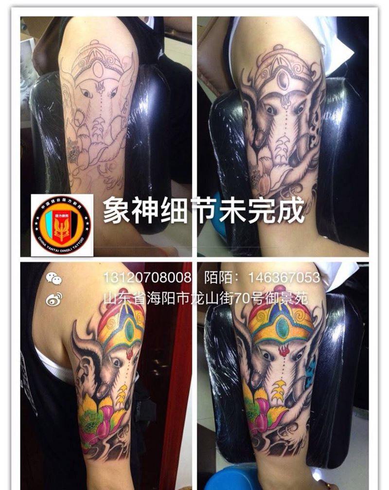 当前位置: 首页 >山东省烟台市纹身店-鼎力刺青专业纹身会所纹身图案>大臂象神纹身图片_手臂传统动物纹身图案