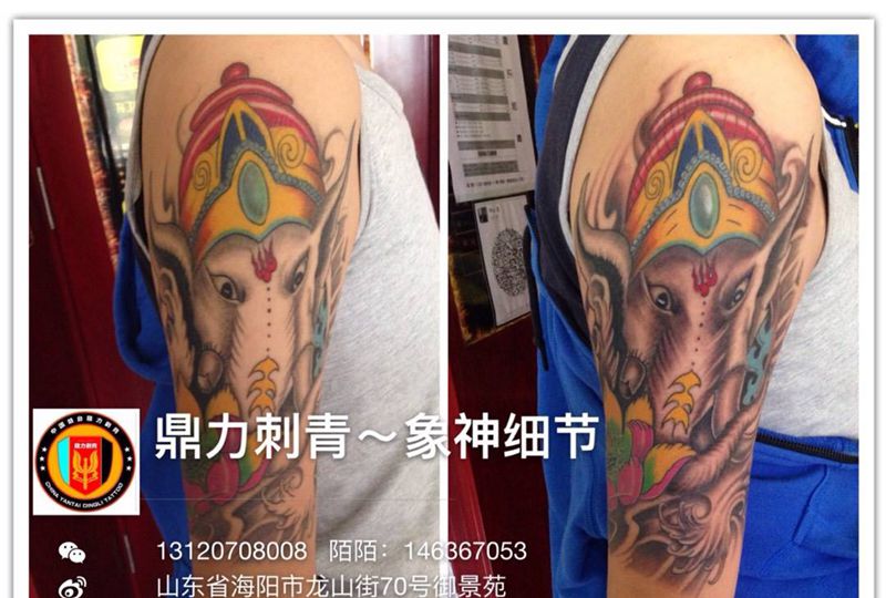 当前位置: 首页 >山东省烟台市纹身店-鼎力刺青专业纹身会所纹身图案>大臂象神纹身图片