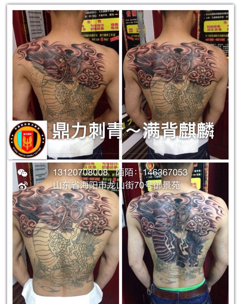 当前位置: 首页 >山东省烟台市纹身店-鼎力刺青专业纹身会所纹身图案>满背麒麟打雾纹身图片_背部传统动物纹身图案