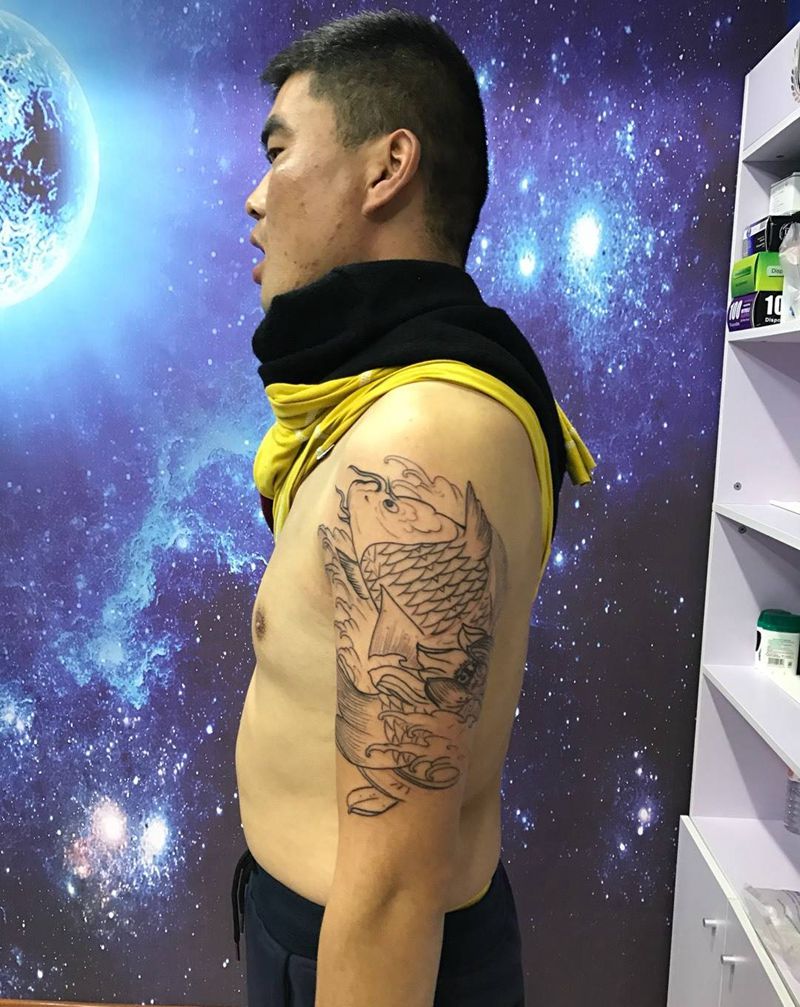 当前位置: 首页 >山东省烟台市纹身店-鼎力刺青专业纹身会所纹身图案>大臂彩色招财锦鲤纹身图片_手臂传统动物纹身图案