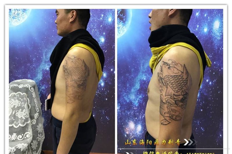 当前位置: 首页 >山东省烟台市纹身店-鼎力刺青专业纹身会所纹身图案>大臂彩色招财锦鲤纹身图片_手臂传统动物纹身图案