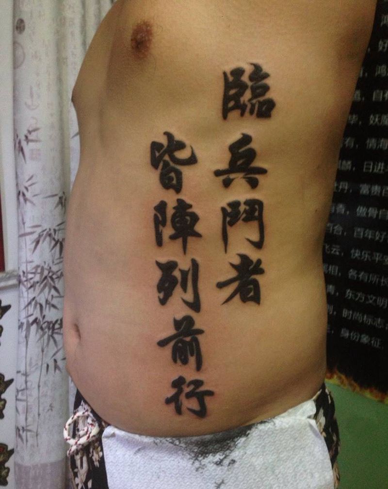 侧肋汉字纹身图片_成品腹部纹身图案