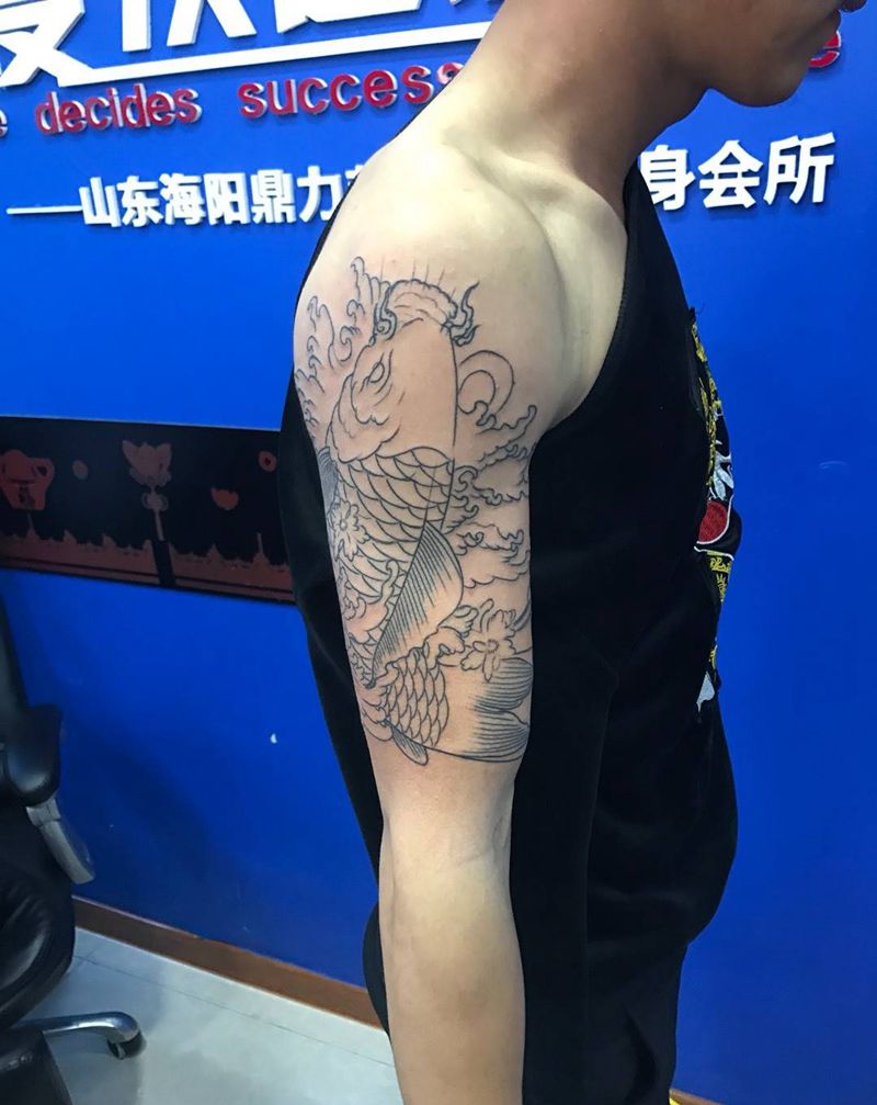 当前位置: 首页 >山东省烟台市纹身店-鼎力刺青专业纹身会所纹身图案>大臂鲤鱼线条纹身图片