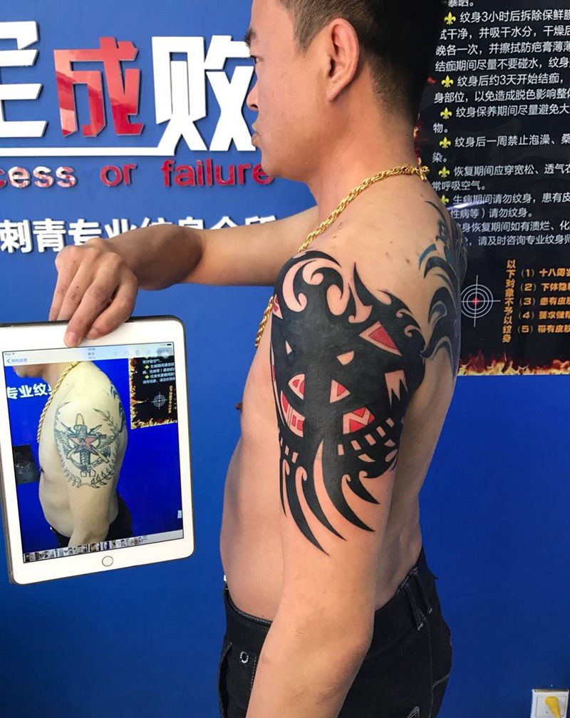 当前位置: 首页 >山东省烟台市纹身店-鼎力刺青专业纹身会所纹身图案>大臂遮盖纹身图片_手臂图腾纹身图案