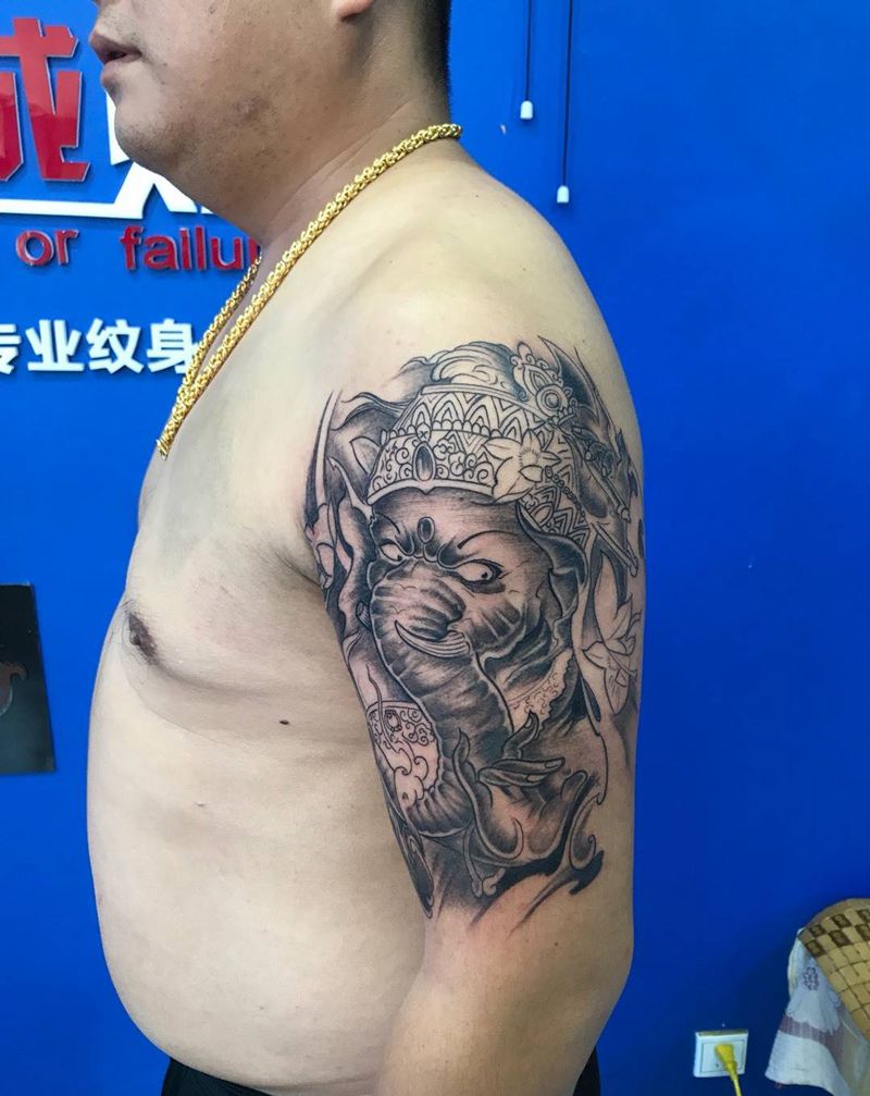 当前位置: 首页 >山东省烟台市纹身店-鼎力刺青专业纹身会所纹身图案>大臂彩色象神纹身图片